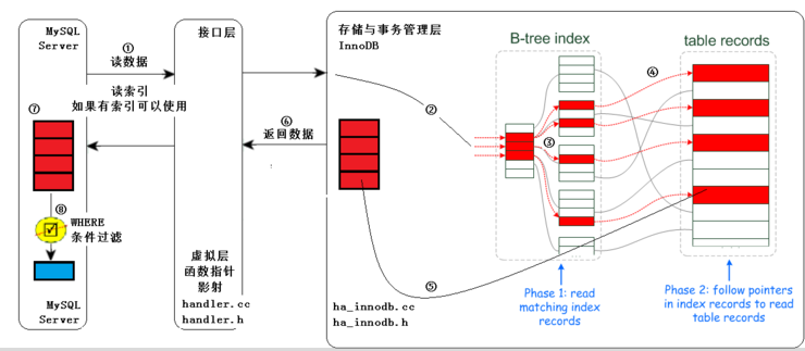 - MySQL 根据优化器生成的执行计划,调用存储引擎的 API 来执行查询