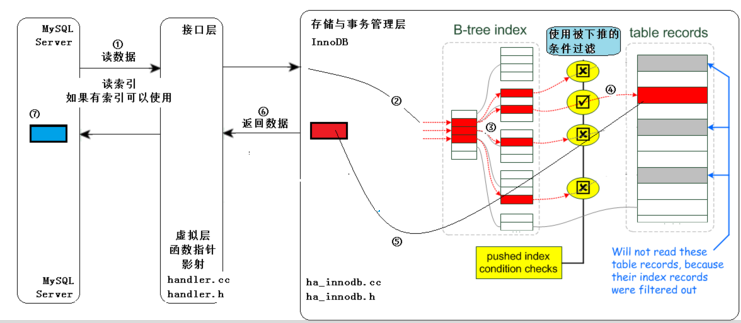 - 查询缓存、分析器、优化器、执行器等,涵盖 MySQL 的大多数核心服务功能,所有的内置函数(日期、数学、加密函数等)