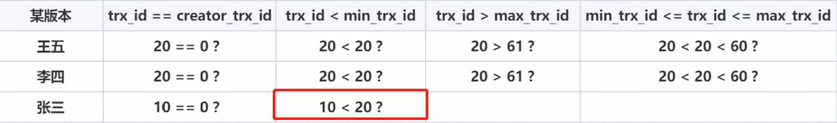 乐观锁的异常情况:如果 version 被其他事务抢先更新,则在当前事务中更新失败,trx_id 没有变成当前事务的 ID,当前事务再次查询还是旧值,就会出现值没变但是更新不了的现象(anomaly)